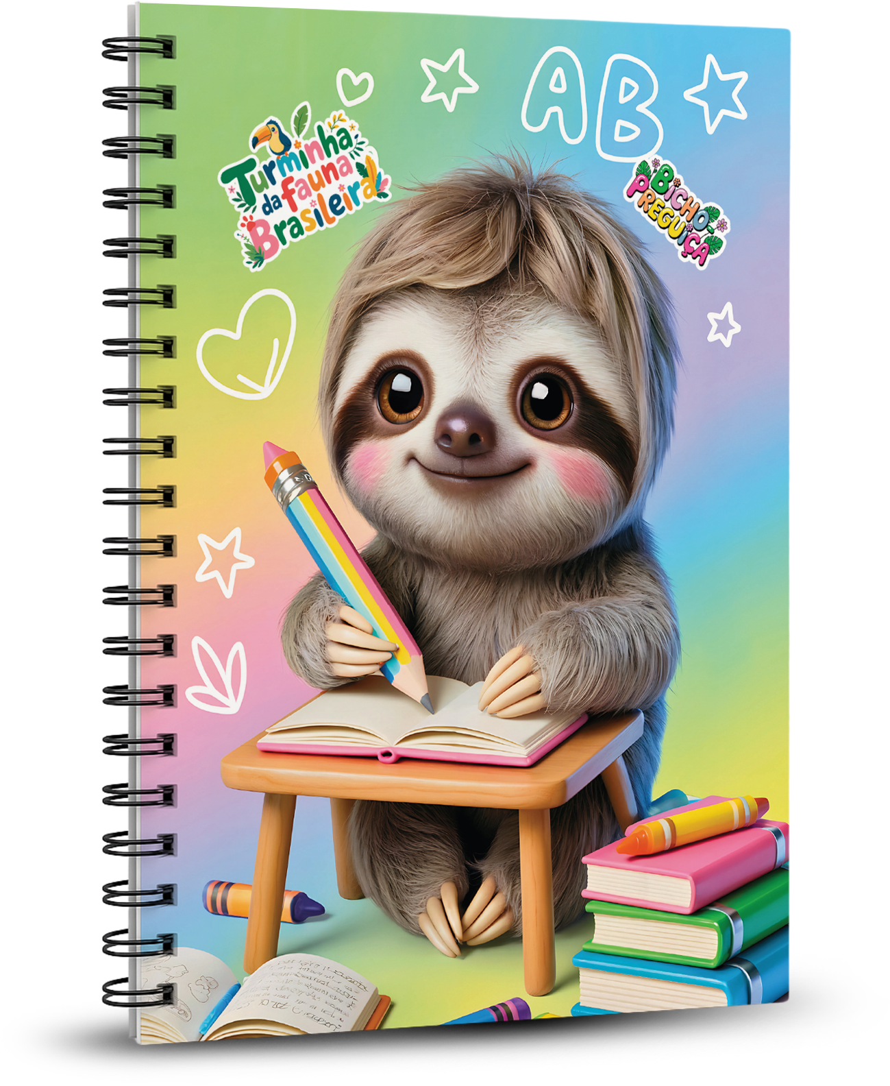 Caderno Universitário 100 folhas - A Turminha da Fauna Brasileira - Bicho Preguiça
