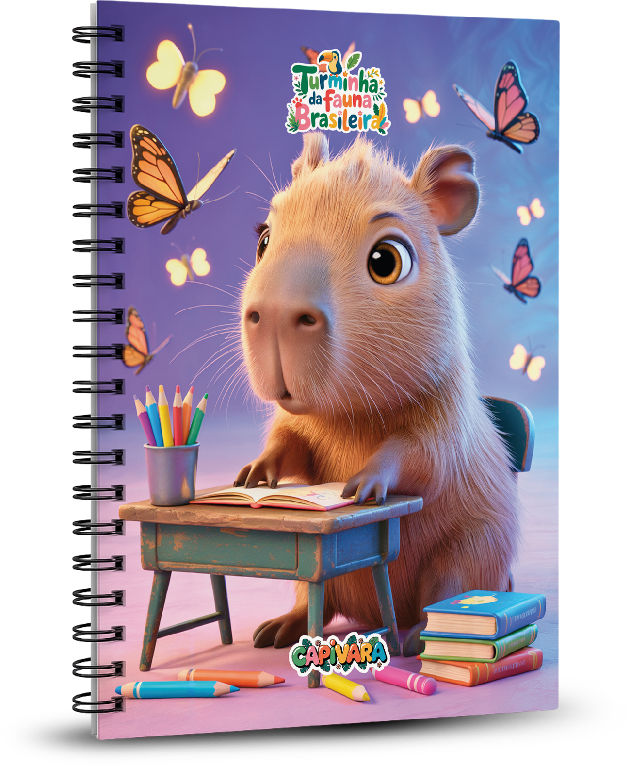 Caderno Universitário 100 folhas - A Turminha da Fauna Brasileira - Capivara